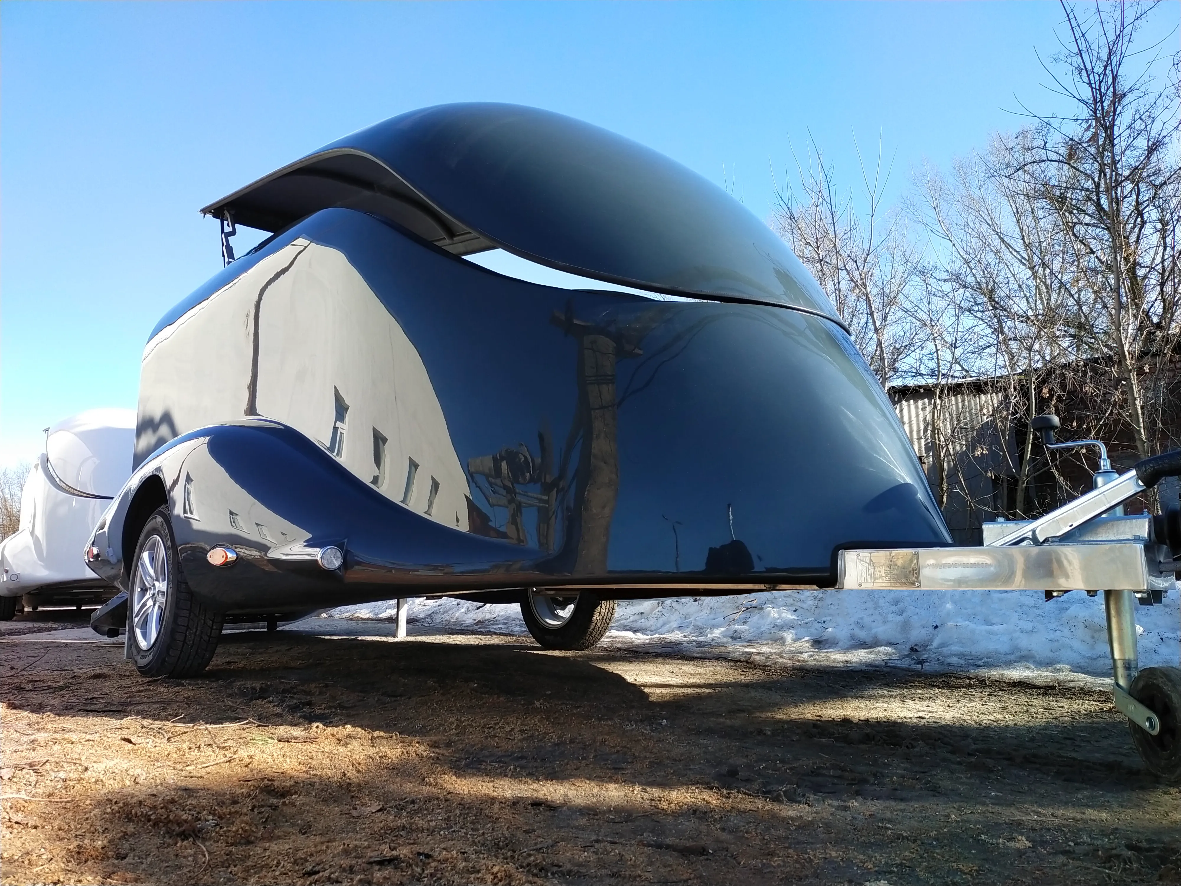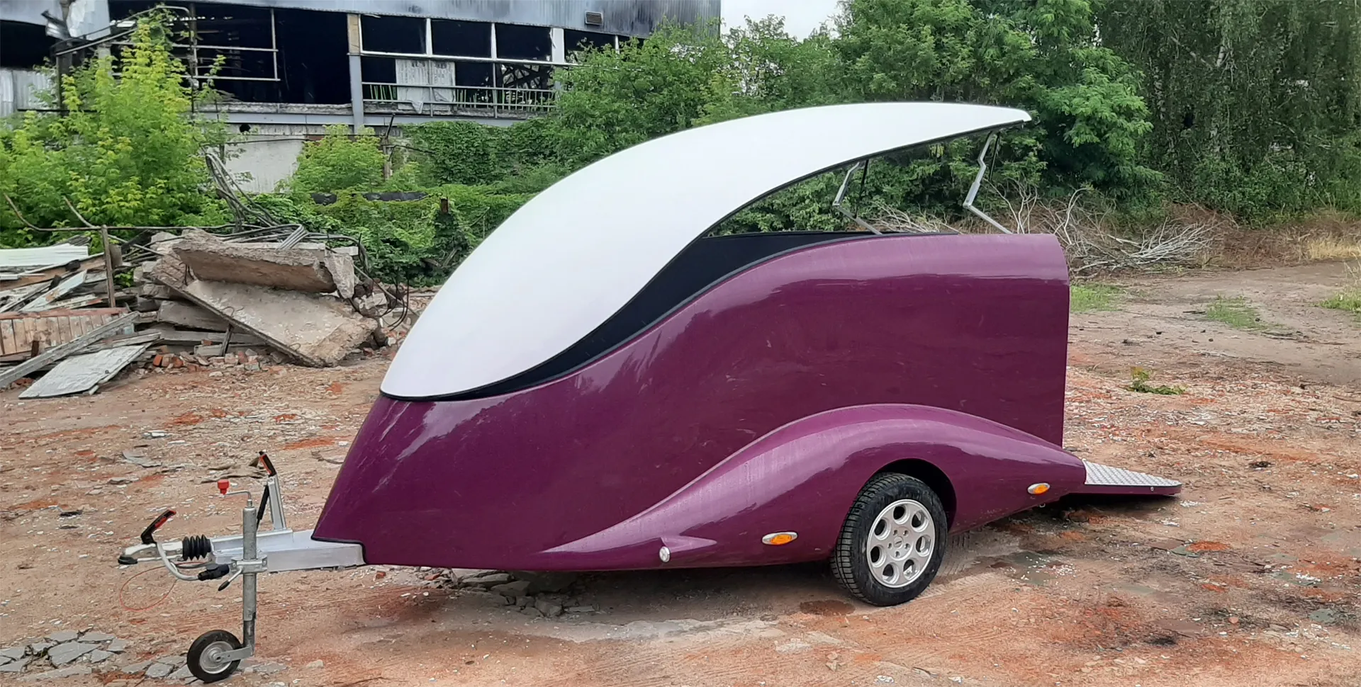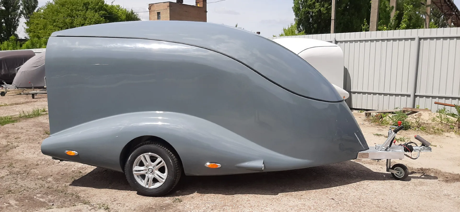 Glasfaserkunststoff erhöhen die Steifigkeit der Karosserie und verbergen die Rückseite der Glasfaser innerhalb des Anhängers.