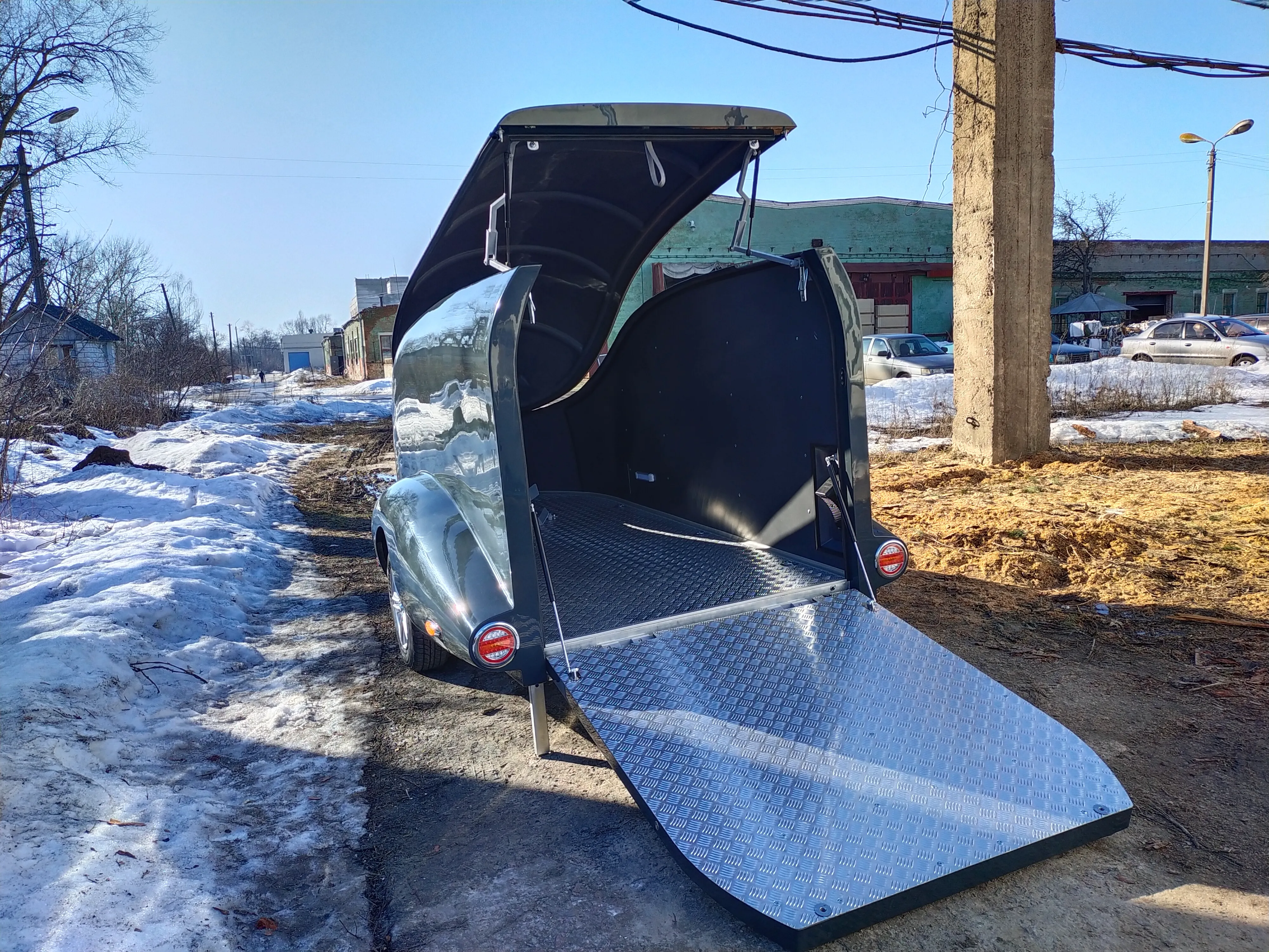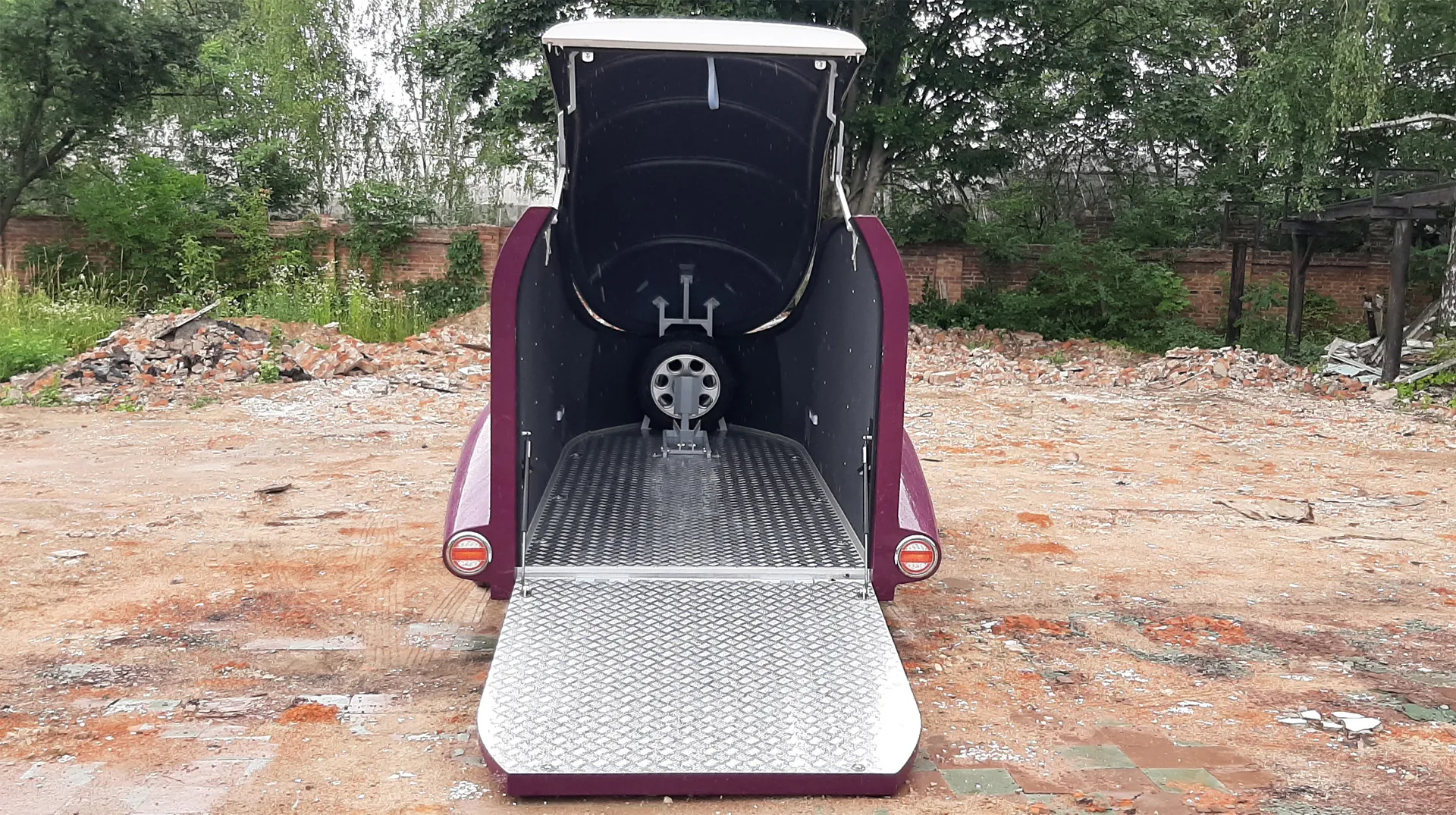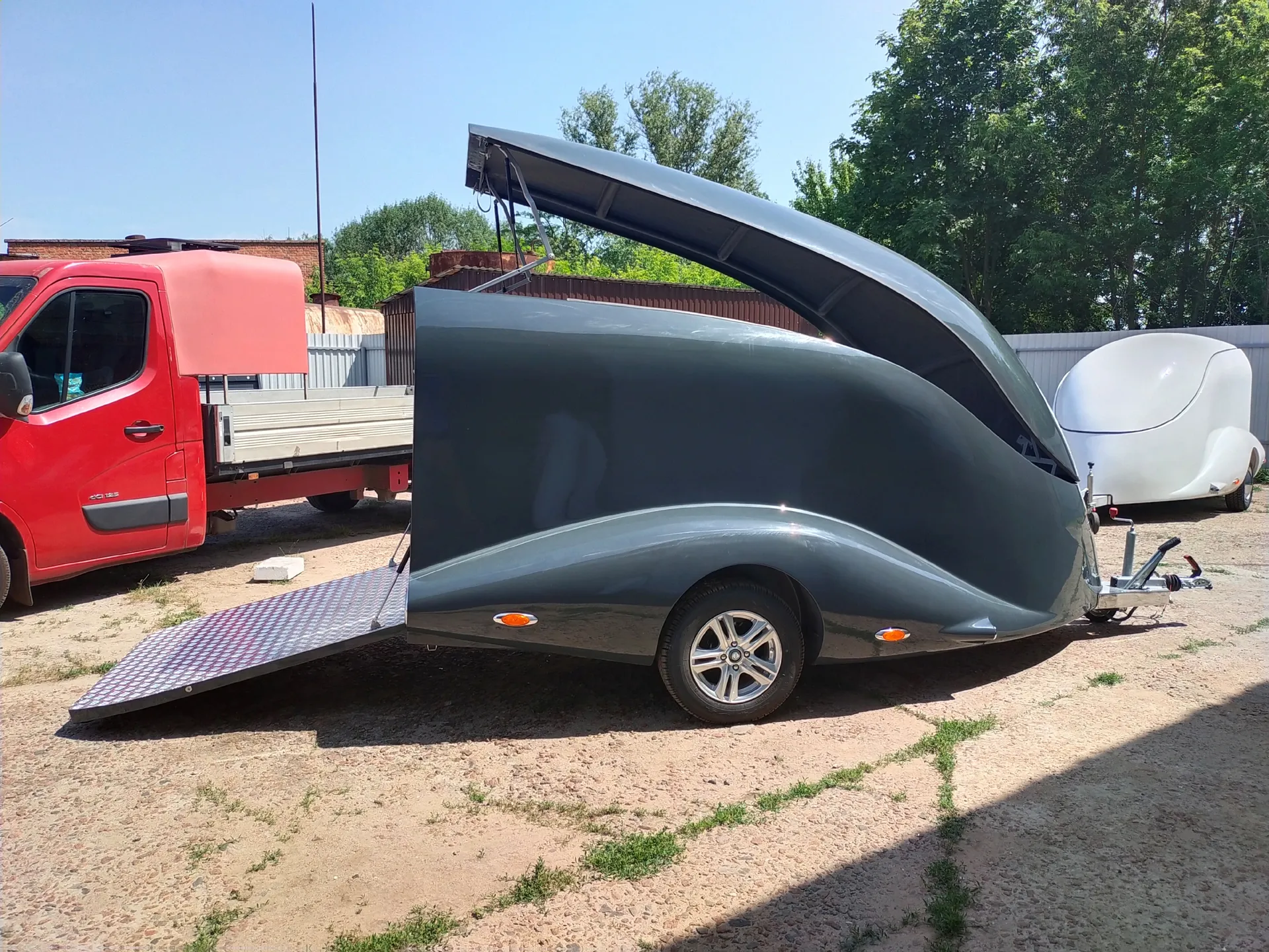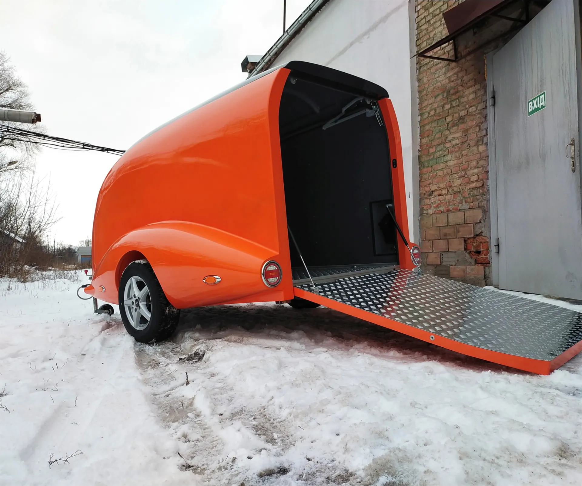 Das sich öffnende Dach ermöglicht es Ihnen, das Motorrad bequem im Anhänger unterzubringen und zu sichern.