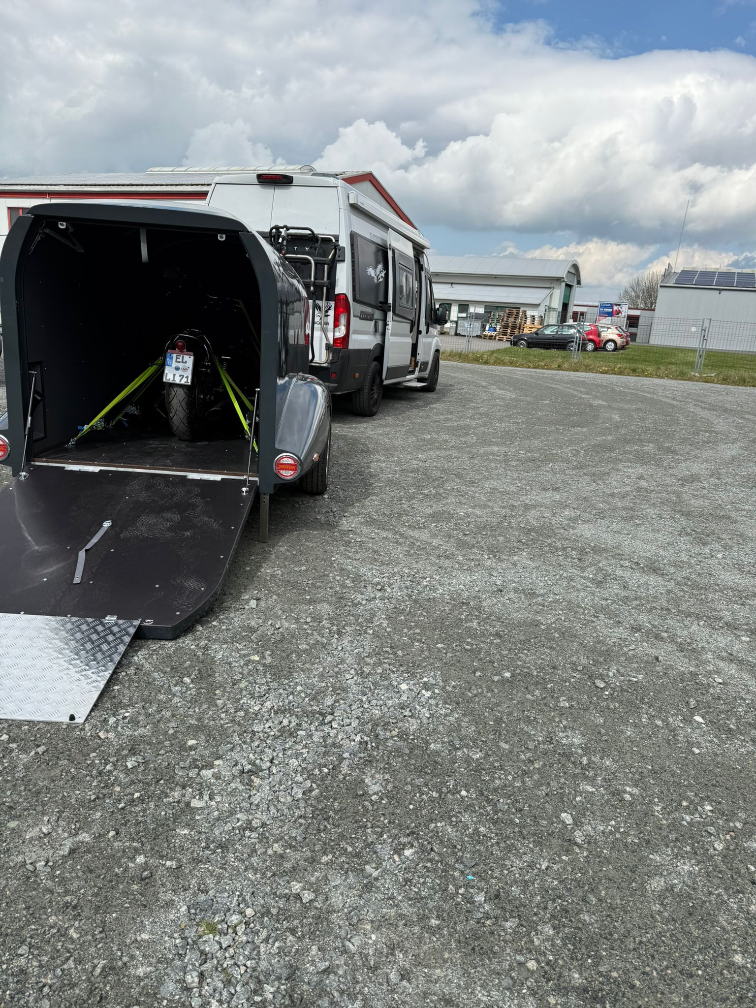 Der Anhänger ist dicht und schützt das Motorrad vollständig vor Umwelteinflüssen - ideal, um das Motorrad außerhalb der Saison oder während längerer Pausen zwischen den Fahrten zu lagern